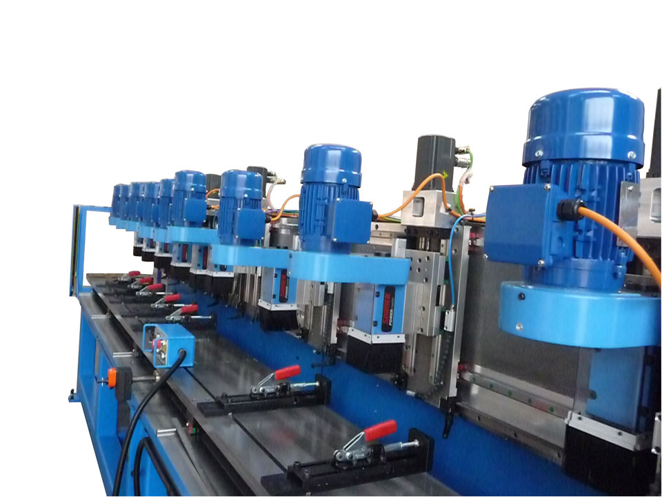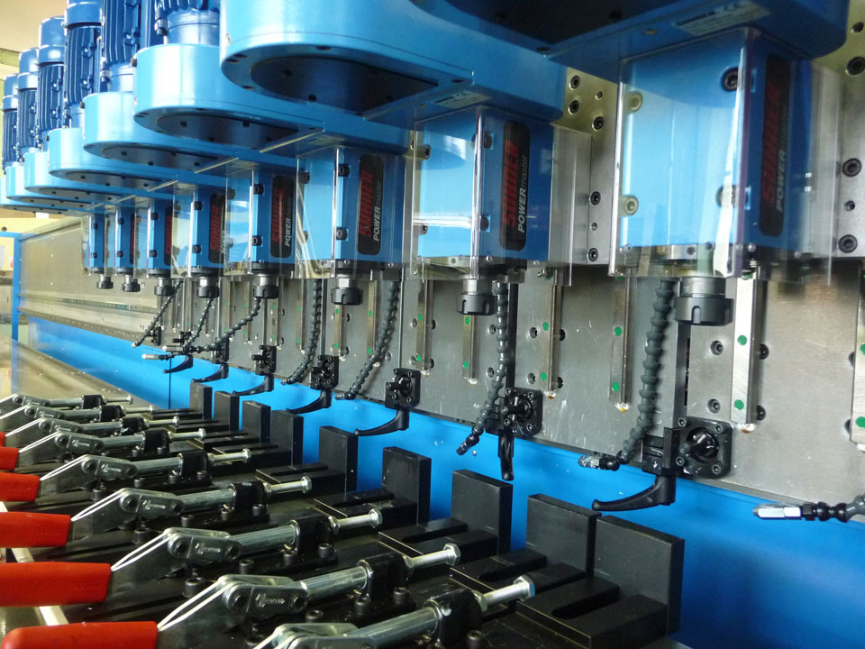 Foratrice automatica a 9 teste idonea a realizzare fino a 10 fori contemporaneamente a passo variabile.