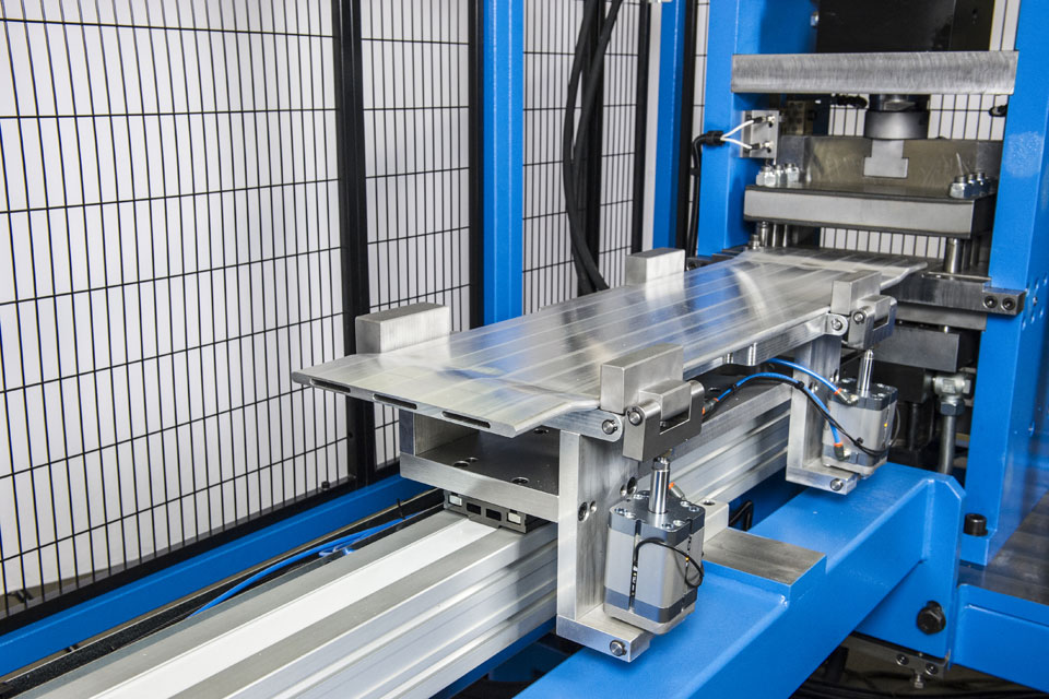 Macchina automatica per la piega a S di estrusi in alluminio.